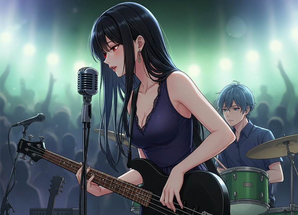 だが今日はリードギターではなくベースを抱えている。指先は迷いなく弦を押さえていたが、その音色にはどこか別人の影が宿っていた。