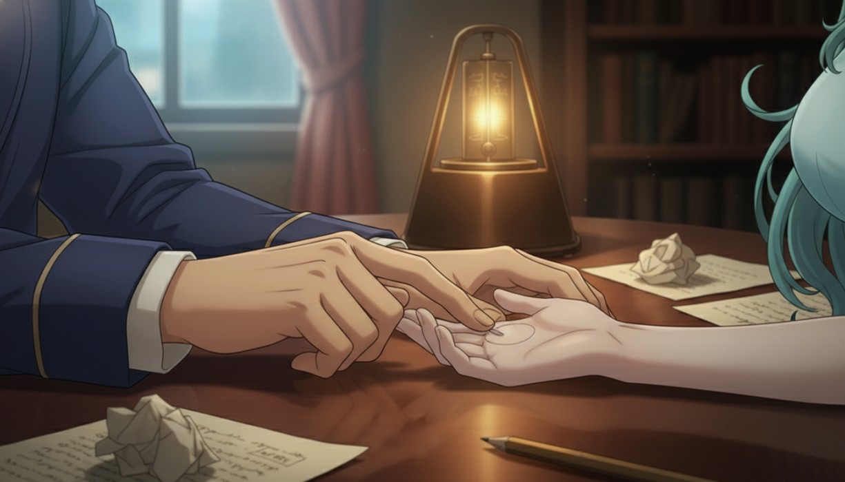 メトロノームを止めると、部屋は静かになった。ラムリーザは明かりを少し落とし、ソニアの両肩を包む。抱き寄せる腕に、約束の重みが宿る。