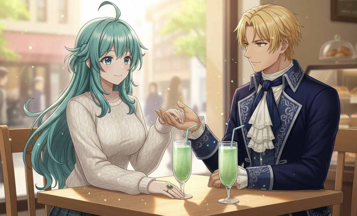 約束通りにパン屋に行って二人は席を取り、パンを食べるついでに薄緑のノンアルコールカクテルを頼んだ。グラスを傾けるたび、ソニアの指のエメラルドが小さく光って、テーブルの上に緑の点々が跳ねた。
