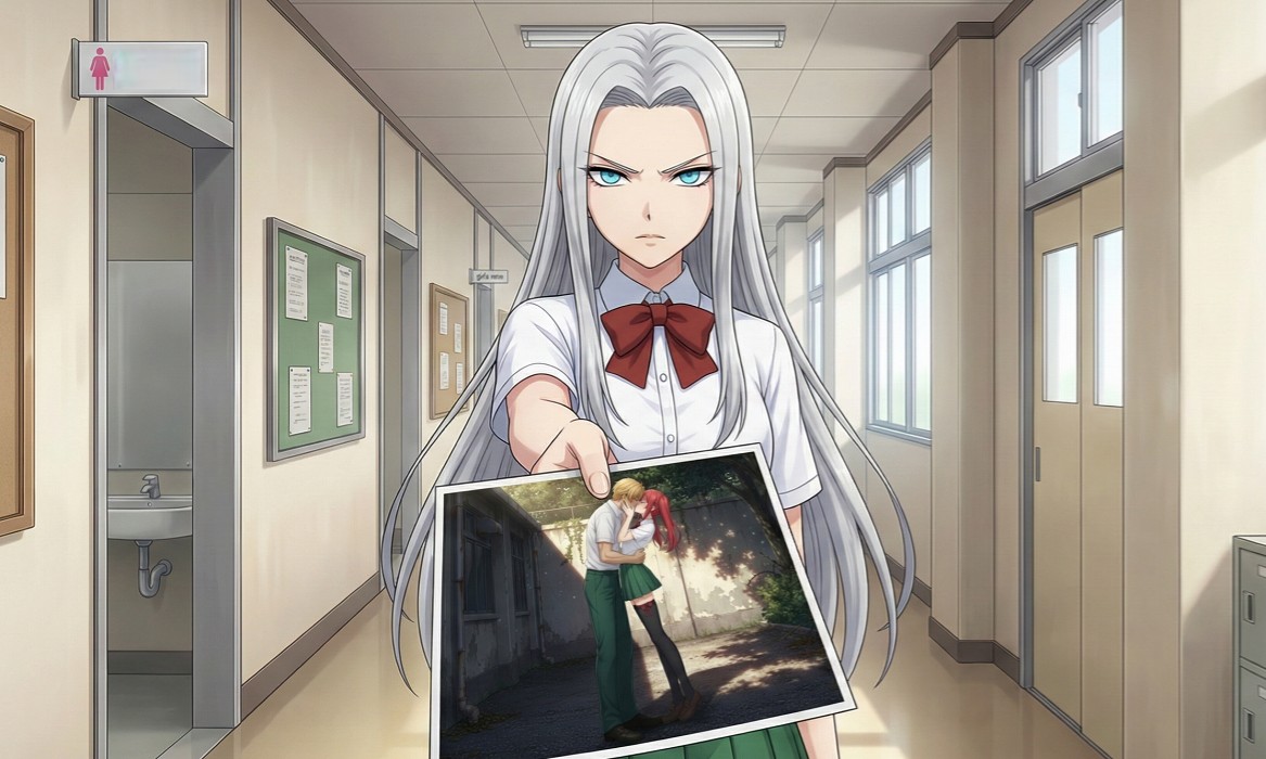 ソニアは、警戒しながらその写真を受け取ると、ちらっと眺めてみた。そこには、一組の男女が校舎裏のどこかでキスしている姿が映っていた。