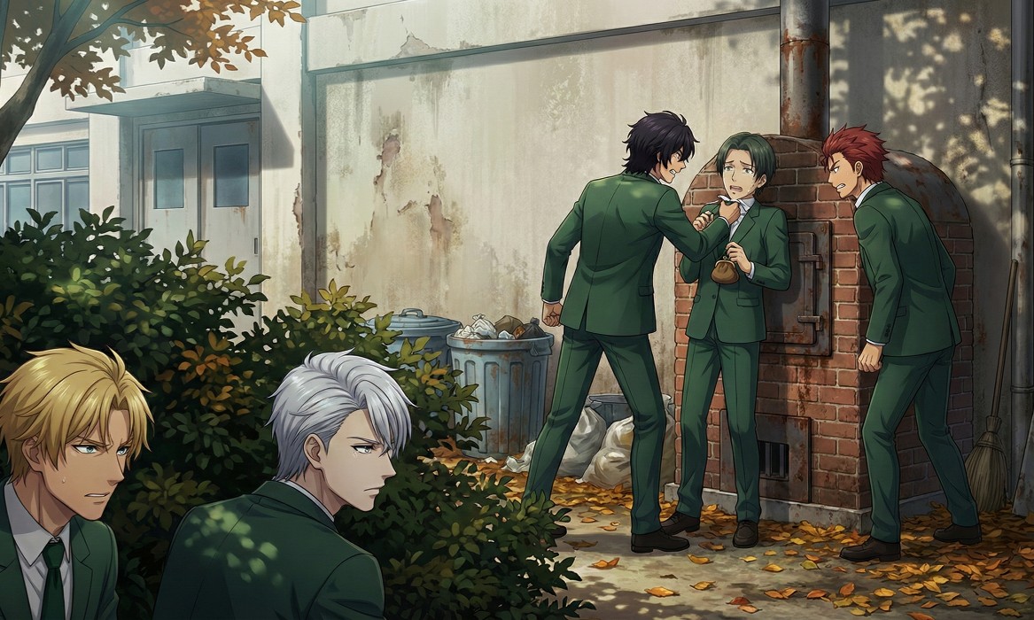 レフトールは、子分を引き連れて、焼却炉脇でぽかんとしている男子生徒の傍へ、近寄っていった。