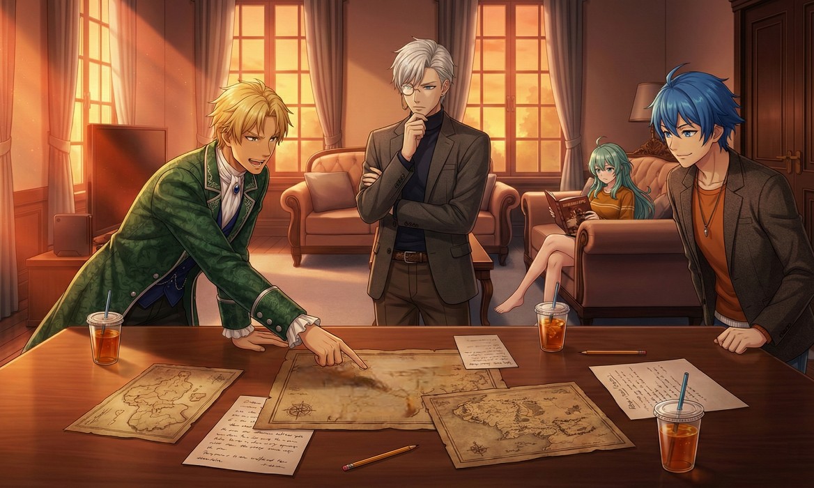 テーブルの上には、描きかけの地図と冷めた紅茶。傍から見れば、ラムリーザたちが放課後にゲームの攻略法を練っているようにしか見えないだろう。